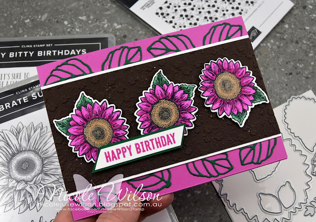 Tip- Did you know you can colour the top of the white embossed sentiment with Stampin' Blends to get any coloured sentiment to match your card?
